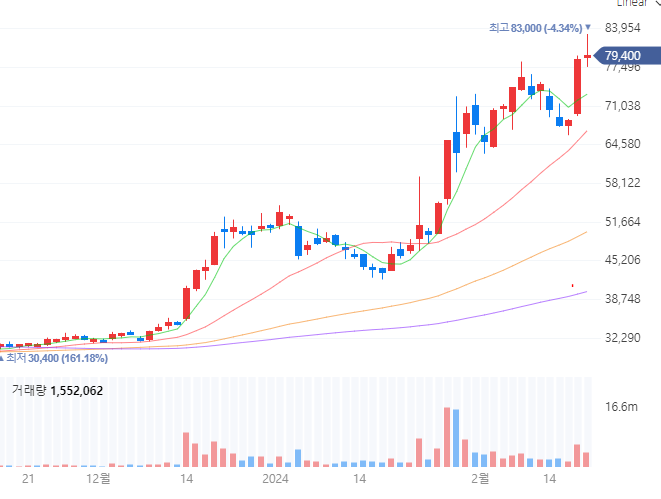 오늘 HLB가 장 초반 사실상 역사 최고가 부근인