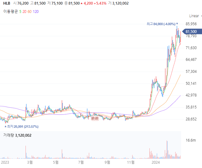 HLB의 주가 상승세와 비교하여 HLB 그룹의