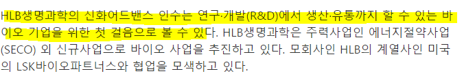 신화어드밴스를 인수할 당시 HLB생명과학은