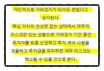 거래 정지 기간 회사에서 집중하여 남은 불확실성을