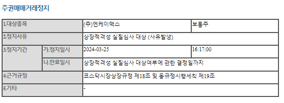 엔케이맥스는 거래정지되었으나