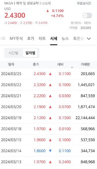 엔케이젠바이오텍 일별 주가